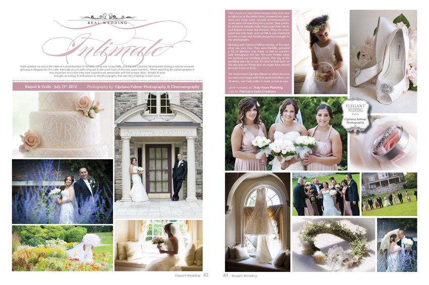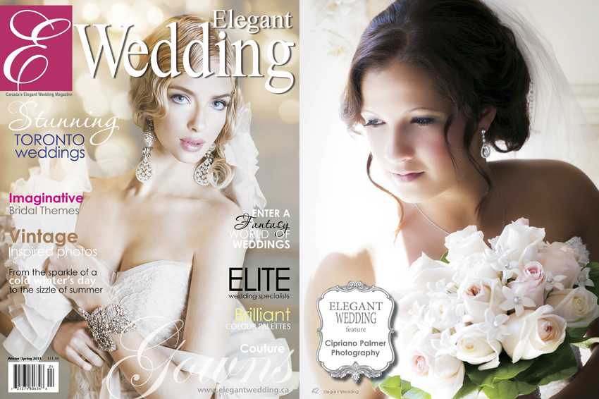 Cipriano Palmer Photography & Cinematography is happy to showcase our “Real Wedding” story featured in the current Winter/Spring issue of Elegant Wedding Magazine. Elegant Wedding Magazine is available across Canada on newstands and in stores such as Shopper’s Drug Mart & Chapter’s. Thank you to Raquel & Vasile for providing the perfect day and a stunning venue to capture these cherished wedding memories.