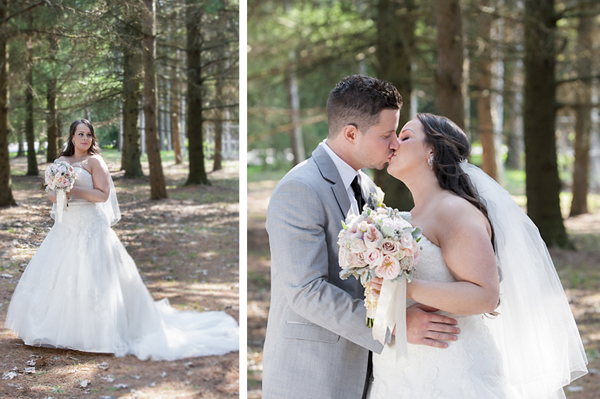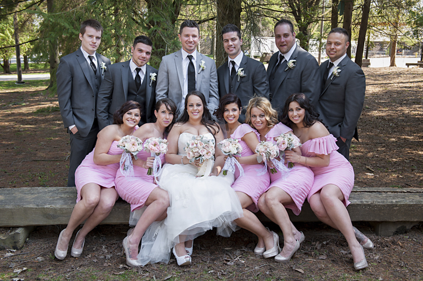 Stephanie & Christopher are a super couple and Josie and I had such an memorable day with them. They could not have chosen a better day to get married.The weather was perfect and the sun was shining all day long .The couple chose The McMichael Art Gallery in Kleinburg, Ontario as the backdrop for their photos. They liked this location because they felt it would be a little more private than nearby Kleinburg, Ontario. The bridal party was ready to celebrate from the moment we arrived in the morning and gave their all to the bride and groom. Their energy and enthusiasm provided lots of laughs during the photo session at McMichael Art Gallery.The wedding reception was held at The Paradise Banquet Hall in Vaughan.