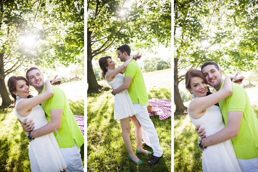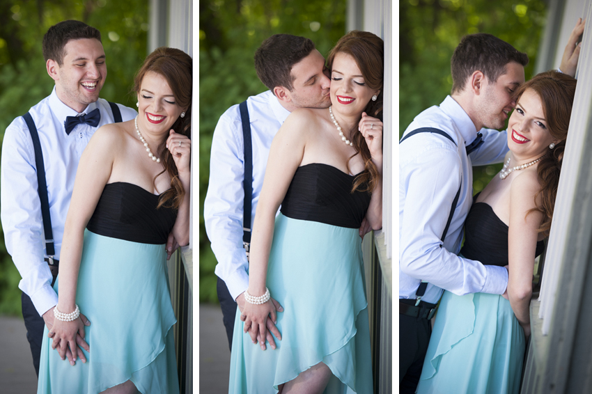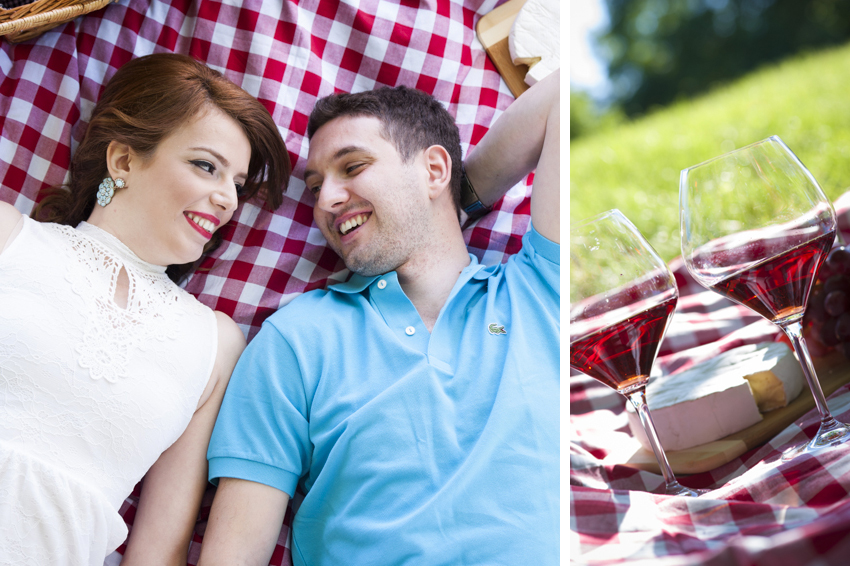 Marzieh & Michael designed a cute “Pic-Nic” theme for their engagement session which we photographed in Unionville,Ontario. We began at the Unionville train station which is always a cool spot to shoot in. From there we made our way down Main Street to our final destination, a spot beside the river that runs through town,where we set up our red and white checkered blanket. We had some great laughs when Michael boosted me up into a tall tree so I could get some overhead shots of the couple lying on the blanket. I had to balance carefully, straddled across two branches to avoid falling on top of my subjects. As it turns out, getting down is way scarier than climbing up. Oh well, anything for a great photo, that’s just how we roll! Next step is to make a Graphi Studio Italian made signing book from the session and we are going to have a lot of great shots to choose from thanks to their natural modelling abilities. After the engagement shoot experience we are so looking forward to their wedding day this coming August. Congratulations Marzieh & Michael on a stellar engagement shoot. You rocked it!